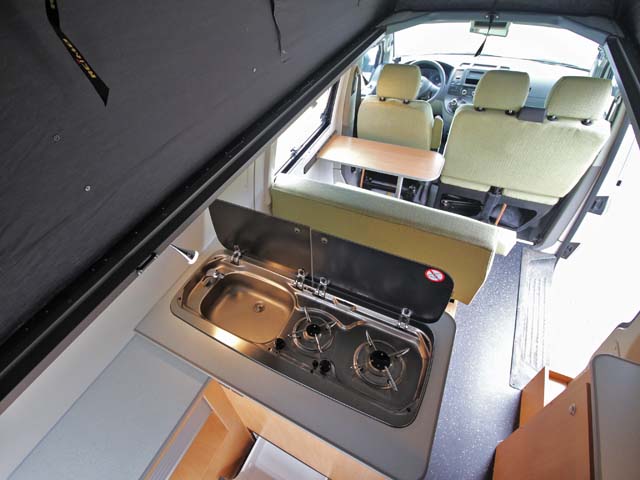 De inrichting moest met een keuken achterin. Normaal niet zo’n probleem, maar wel als dit in een VW Transporter ingepast moest worden. Na veel passen en meten is het toch gelukt om alle eisen te verwezenlijken. Wel was het noodzakelijk dat het een Transporter met een lange wielbasis zou worden: de klant kon op zoek naar een VW Transporter T5 met een lange wielbasis.
